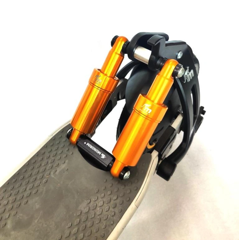 Zestaw do konwersji tylnego zawieszenia Monorim MXR1 z pojedynczym amortyzatorem na zawieszenie Monorim DMXR1 z podwójnym amortyzatorem dla jeszcze większego komfortu użytkowania hulajnogi.